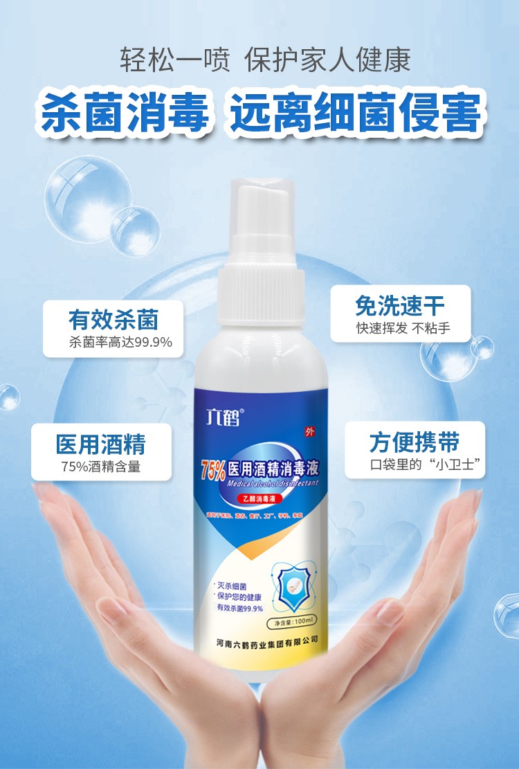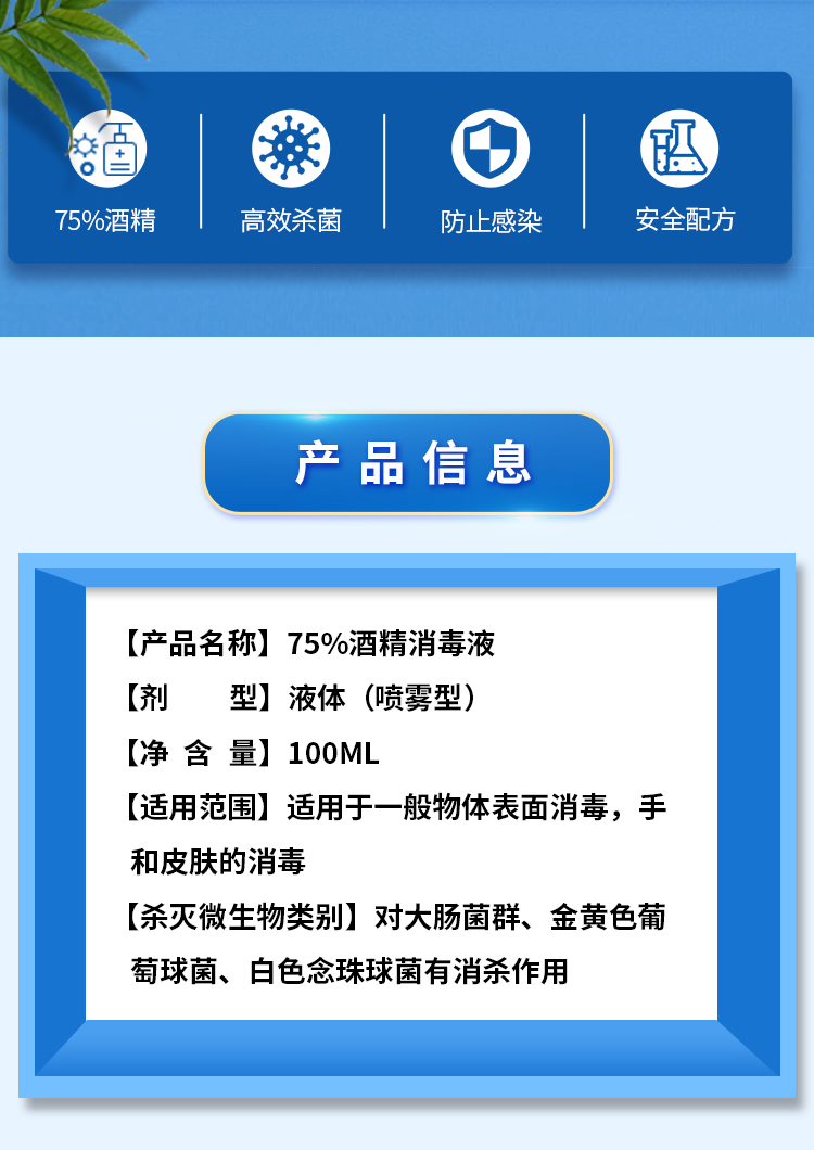 現(xiàn)貨75%乙醇酒精消毒液100ml抑菌噴霧家用醫(yī)院產(chǎn)品說明: