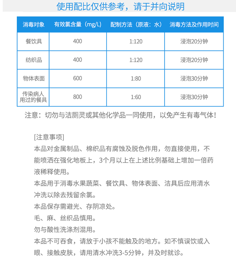 [使用范圍]用于一般物體表面織物、血液及粘液等體液污染物品、排泄物的消毒、以及瓜果蔬菜、食品加工工具和設(shè)備消毒等