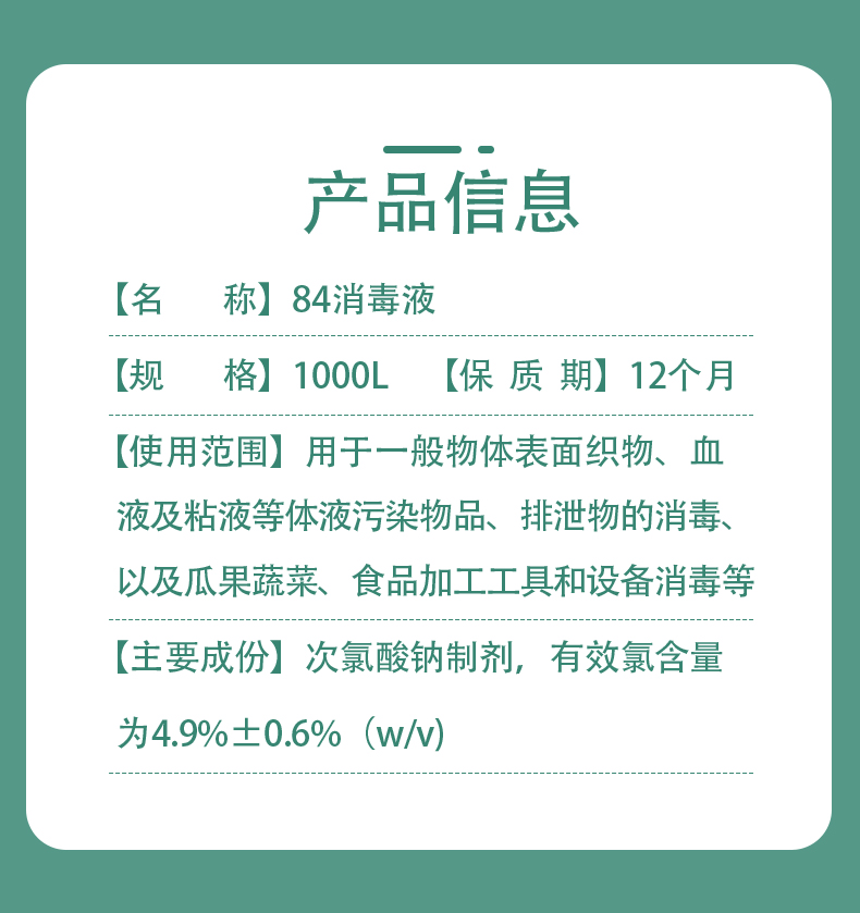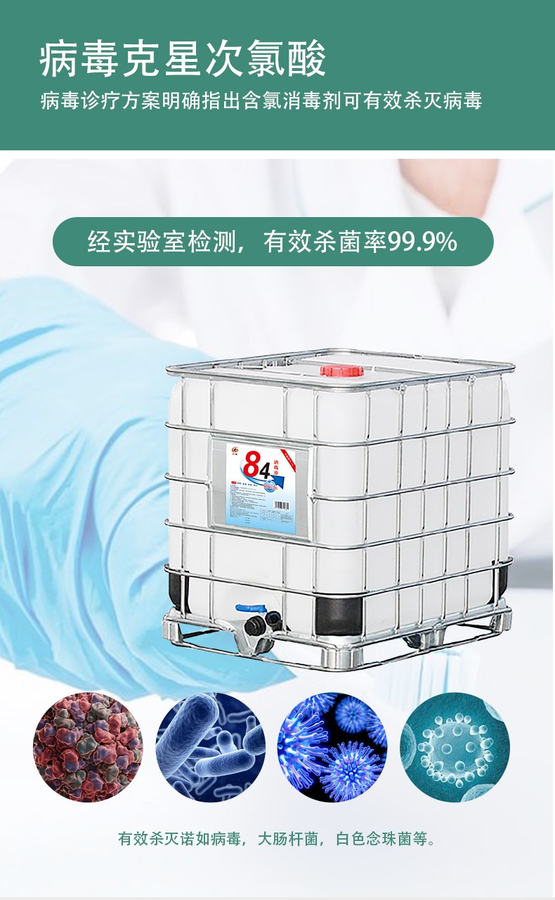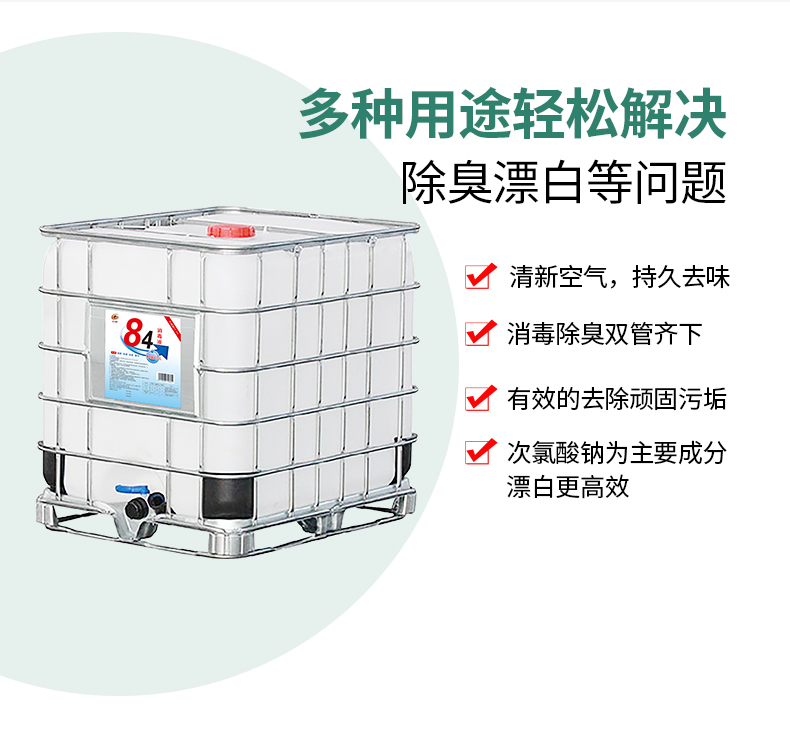 廠家直銷84消毒液噸桶1000L工廠學(xué)校大空間消毒產(chǎn)品說明:
