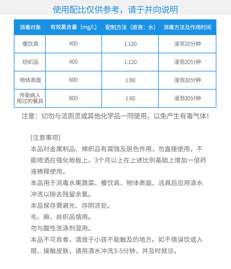 [使用范圍]用于一般物體表面織物、血液及粘液等體液污染物品、排泄物的消毒、以及瓜果蔬菜、食品加工工具和設(shè)備消毒等