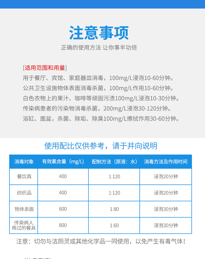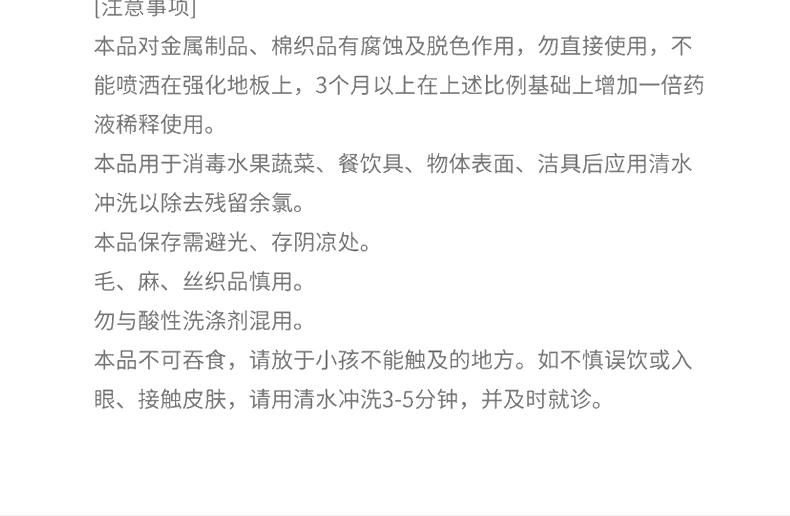 [使用范圍]用于一般物體表面織物、血液及粘液等體液污染物品、排泄物的消毒、以及瓜果蔬菜、食品加工工具和設(shè)備消毒等