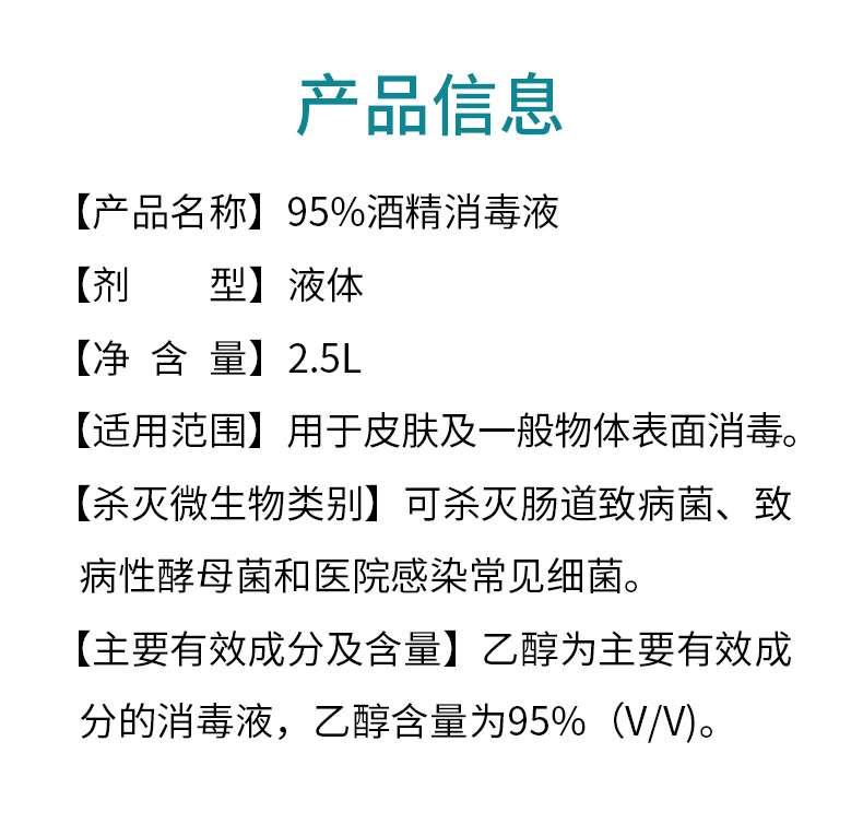 95%酒精消毒液 2.5L家用便攜學(xué)校超市工廠安檢產(chǎn)品說明: