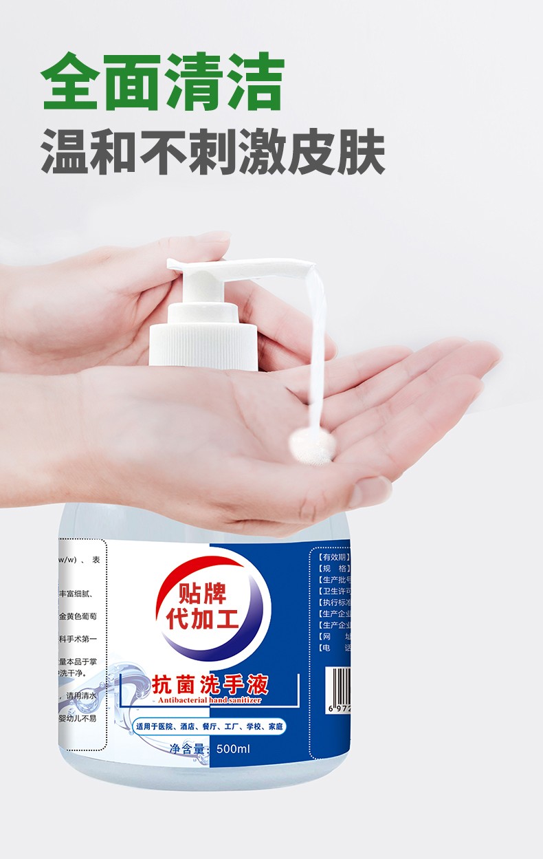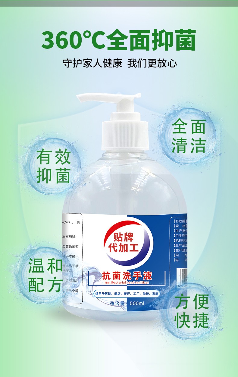 500ml消毒酒精抗菌洗手液 貼牌產(chǎn)品說(shuō)明: