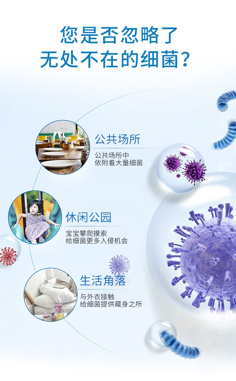 消滅類別細(xì)菌繁殖體、大腸桿菌,金黃色葡萄糖菌、白色念珠菌。
