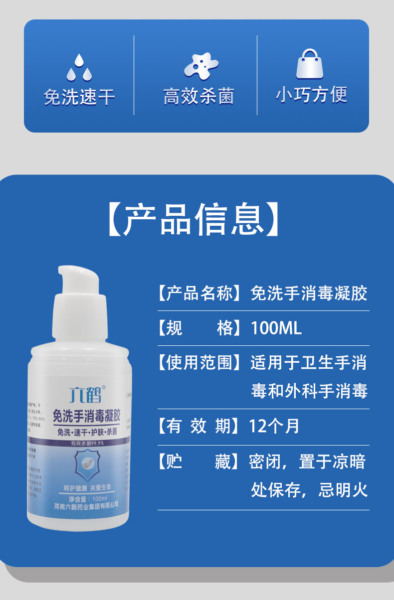 六鶴免洗手蘆薈消毒凝膠100ml 75度乙醇殺毒產(chǎn)品說明: