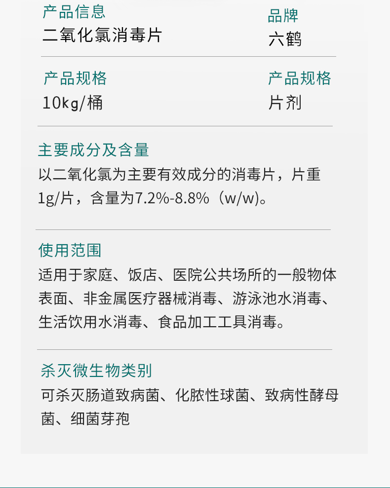 六鶴居家含氯84消毒片二氧化氯生活水泡騰消毒片10kg產(chǎn)品說(shuō)明: