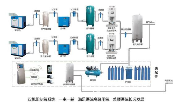 醫(yī)用中心制氧系統(tǒng)又稱醫(yī)用分子篩變壓吸附PSA制氧系統(tǒng),是以分子篩(molecular sieve)為吸附劑,通過變壓吸附法(pressure swing adsorption,PSA)以空氣為原料,在常溫低壓的條件下,利用分子篩加壓時(shí)對空氣中的氮?dú)猓ㄎ劫|(zhì))吸附容量增加,減壓時(shí)對空氣中的氮?dú)馕饺萘繙p少的特性,形成加壓吸附、減壓解吸的快速循環(huán)過程,使空氣中的氧和氮?dú)獾靡苑蛛x,而空氣中的二氧化碳、氣態(tài)酸和其它氣態(tài)氧化物等,均屬于分子極性很強(qiáng)的物質(zhì),很難通過分子篩,從而使產(chǎn)出氧的氧氣純度達(dá)到93% 以上)。
