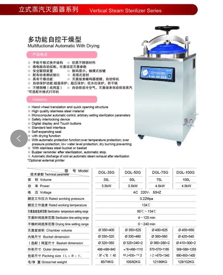 登冠+DGL-100G立式壓力蒸汽滅菌器產(chǎn)品說明: