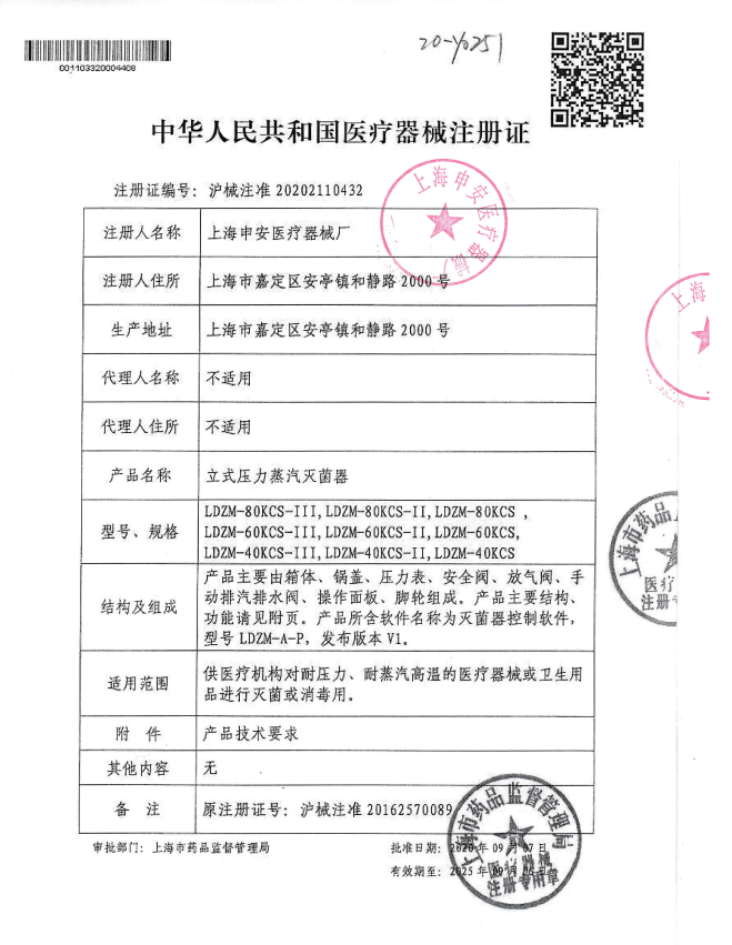 | 注冊證號/備案憑證號: | 滬械注準20202110432 |
