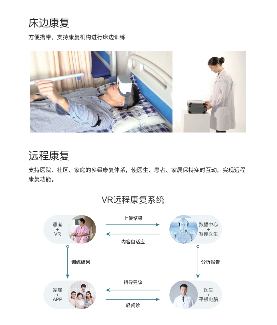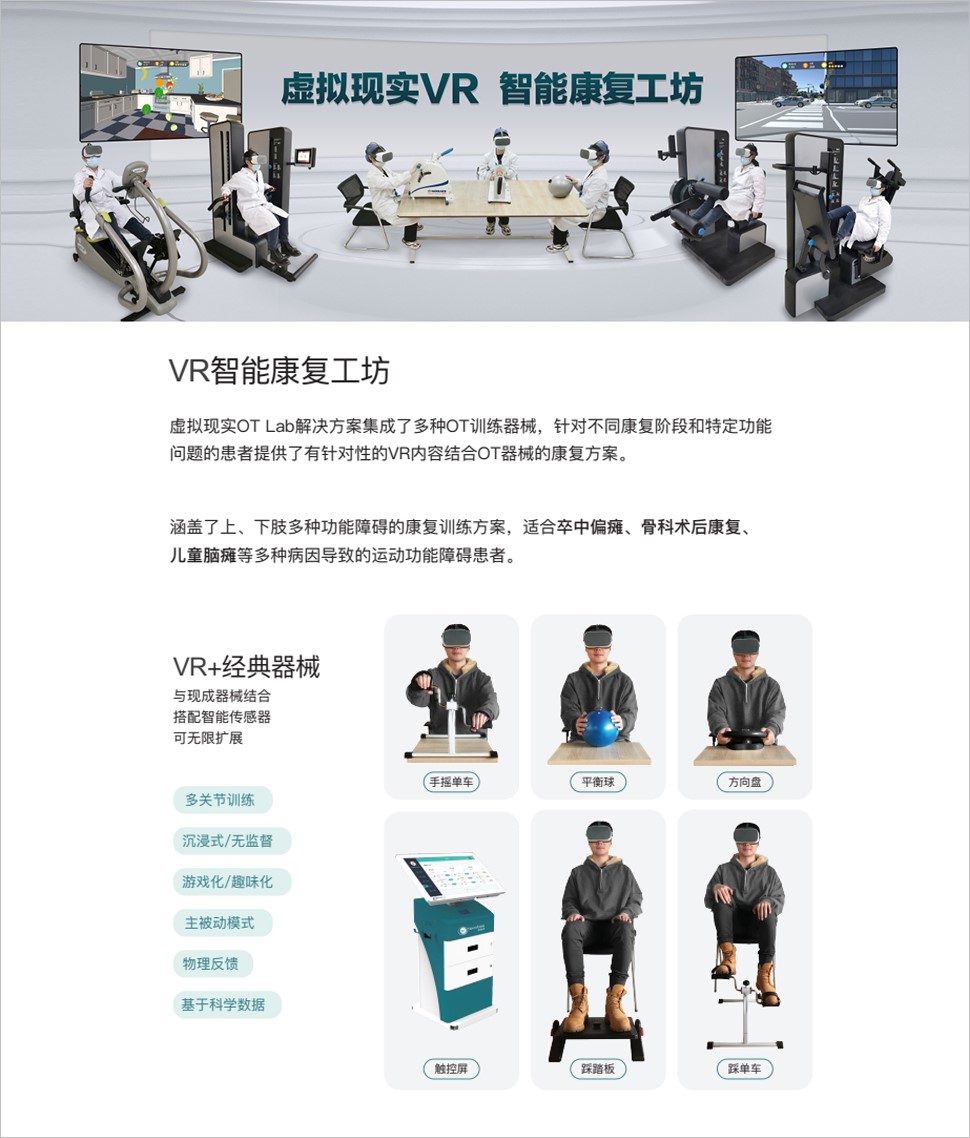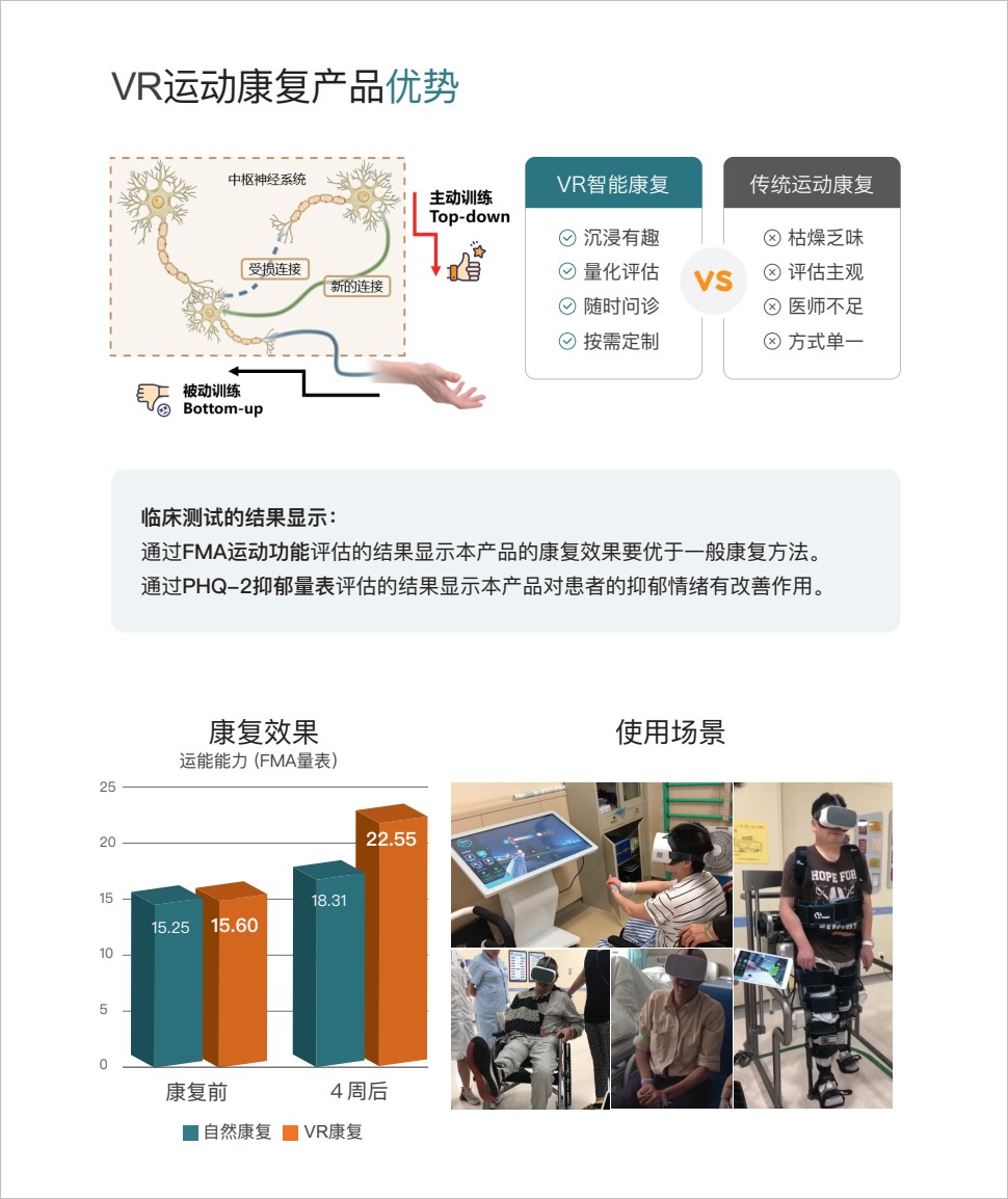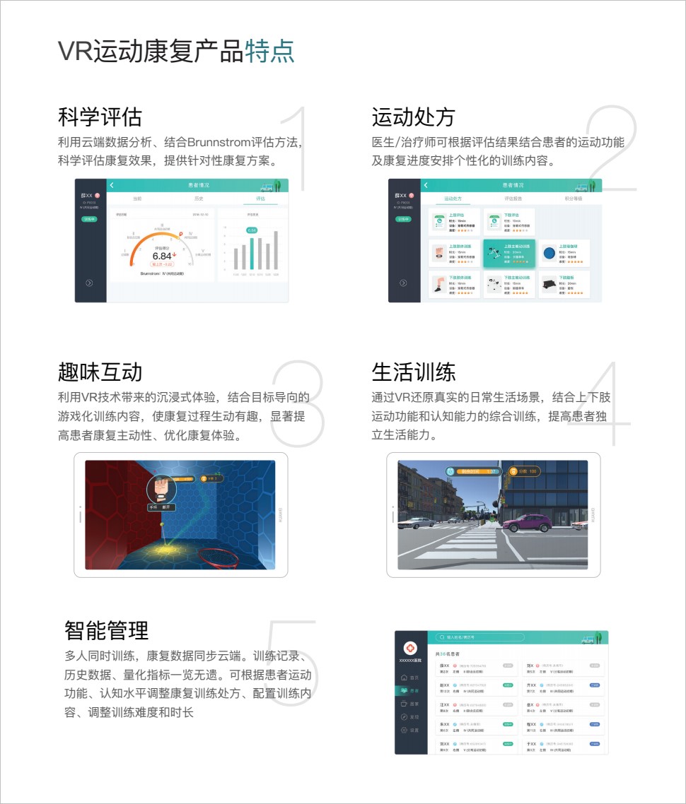 以互聯(lián)網(wǎng)技術(shù)為基礎(chǔ),融合虛擬現(xiàn)實(shí)、智能可穿戴、大數(shù)據(jù)分析等技術(shù),充分運(yùn)用康復(fù)醫(yī)學(xué)理論,為運(yùn)動(dòng)功能的康復(fù)提供—套創(chuàng)新解決方案。