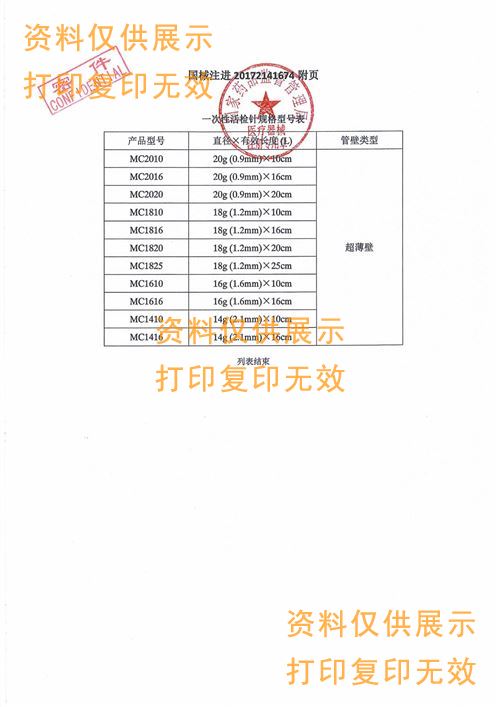 型號(hào):MC2020? 規(guī)格:5支/盒 ,20g(0.9mm)x20cm,超薄壁