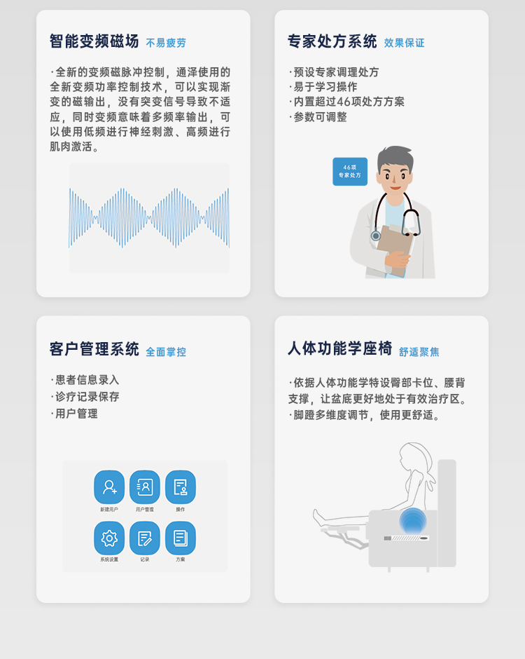 盆底磁療儀器品牌工廠 盆底肌磁電聯(lián)合治療儀精品制造產(chǎn)品說明: