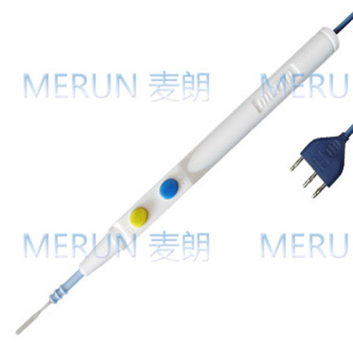 一次性手控型電刀筆:主要由絕緣套管、手術(shù)電及、手控按鈕開關(guān)、塑料柄部、電纜線及插頭組成。