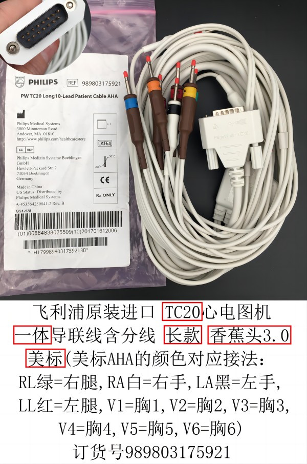 飛利浦原裝TC20心電圖機一體導聯(lián)線989803175921產(chǎn)品說明: