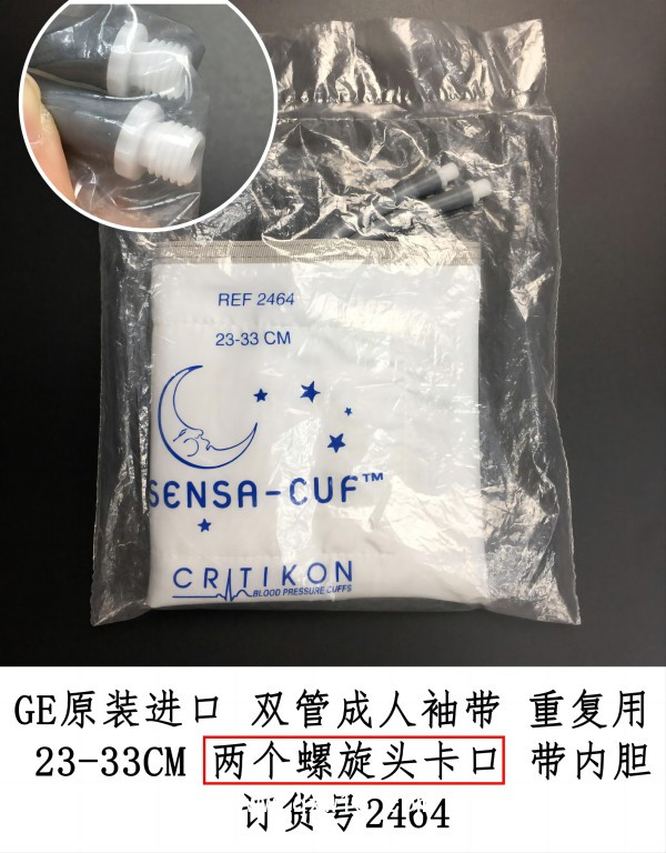 GE原裝進(jìn)口雙管成人袖帶 23-33CM 重復(fù)用 兩個(gè)螺旋頭卡口 帶內(nèi)膽 訂貨號2464