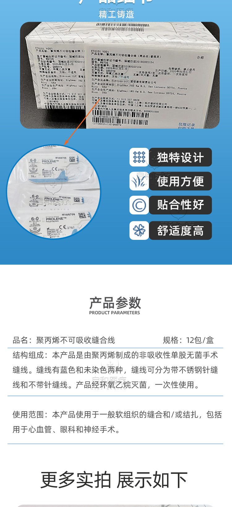 強(qiáng)生聚丙烯不可吸收性縫合線W8556產(chǎn)品說(shuō)明: