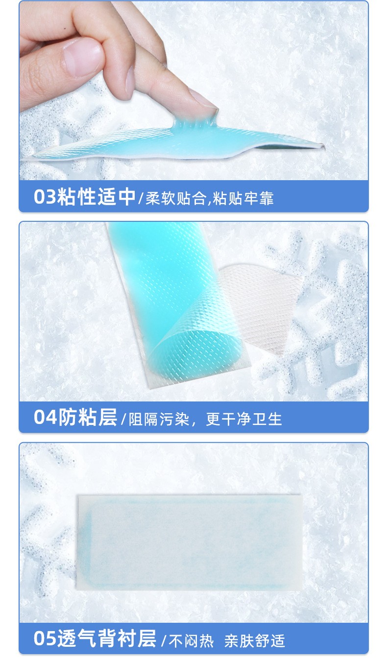 廠家直供退熱凝膠兒童發(fā)燒貼嬰兒退燒冰涼冰寶貼產(chǎn)品說(shuō)明: