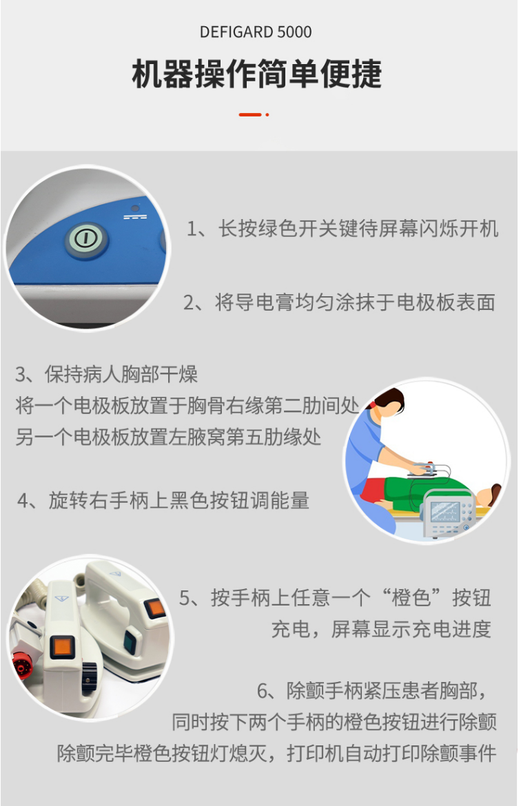 除顫: 可使用除顫手柄、粘性電極片或體內(nèi)除顫手柄 。