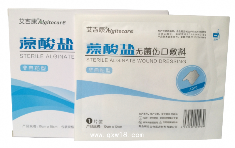 產(chǎn)品簡(jiǎn)介:“艾吉康”藻酸鹽醫(yī)用敷料是一種由褐藻中提取的海藻酸鹽經(jīng)過濕法紡絲、無(wú)紡布加工、切割包裝、滅菌等工藝加工后制成的無(wú)菌醫(yī)用敷料,具有在吸收傷口滲液后形成凝膠的獨(dú)特性能?!鞍怠痹逅猁}醫(yī)用敷料通過為創(chuàng)面提供濕潤(rùn)的愈合環(huán)境加快傷口的愈合,對(duì)難愈性慢性創(chuàng)面的護(hù)理有良好的療效。