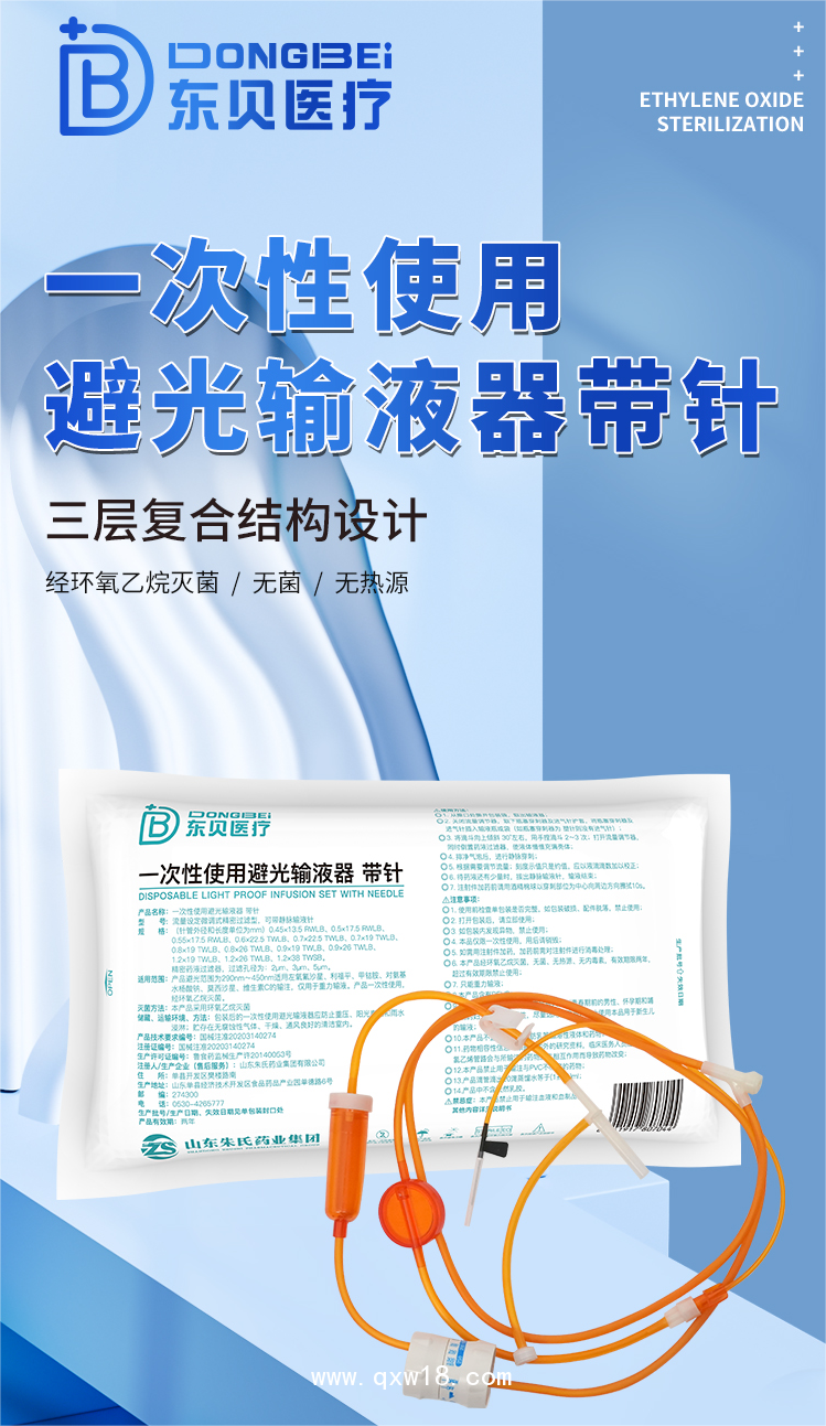 【適用范圍】產(chǎn)品避光范圍為290nm~450nm適用左氧氟沙星、利福平、甲鈷胺、對氨基水楊酸鈉、莫西沙星、維生素C,臨床光敏藥物的輸注。產(chǎn)品一次性使用,經(jīng)環(huán)氧乙烷滅菌。