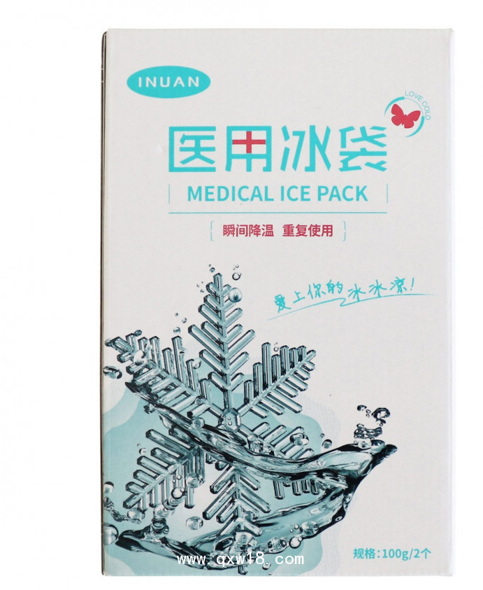 【使用說明】III型產(chǎn)品初次使用時,捏破里袋,料動冰袋,數(shù)于患處,使用后妥善保存;再次使用時將產(chǎn)品放置在(-15士5)℃ 冷凍15mn~20min后,將其固定在需要冷敷的部位。