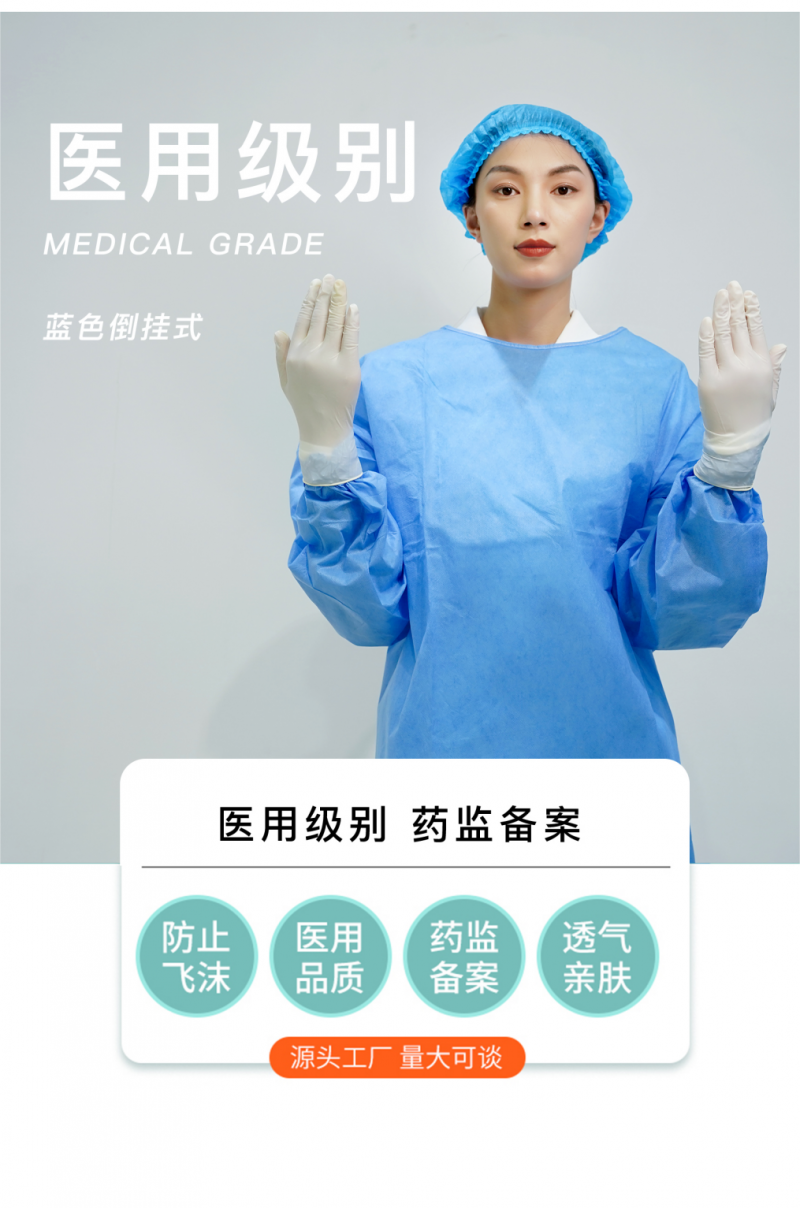 【產(chǎn)品描述】通常采用非織造布為主要原料,經(jīng)裁剪、縫紉制成。非無菌提供,一次性使用。