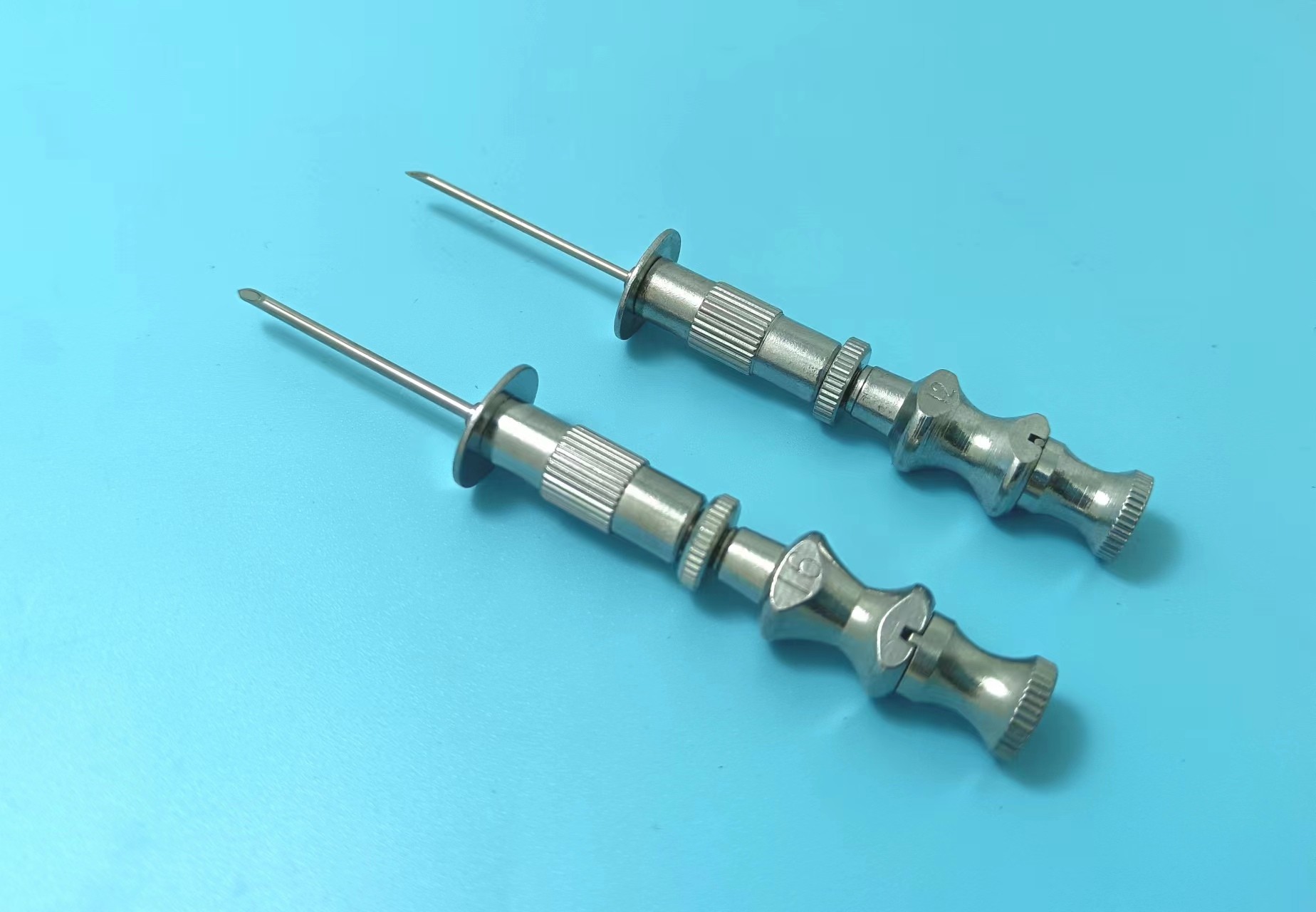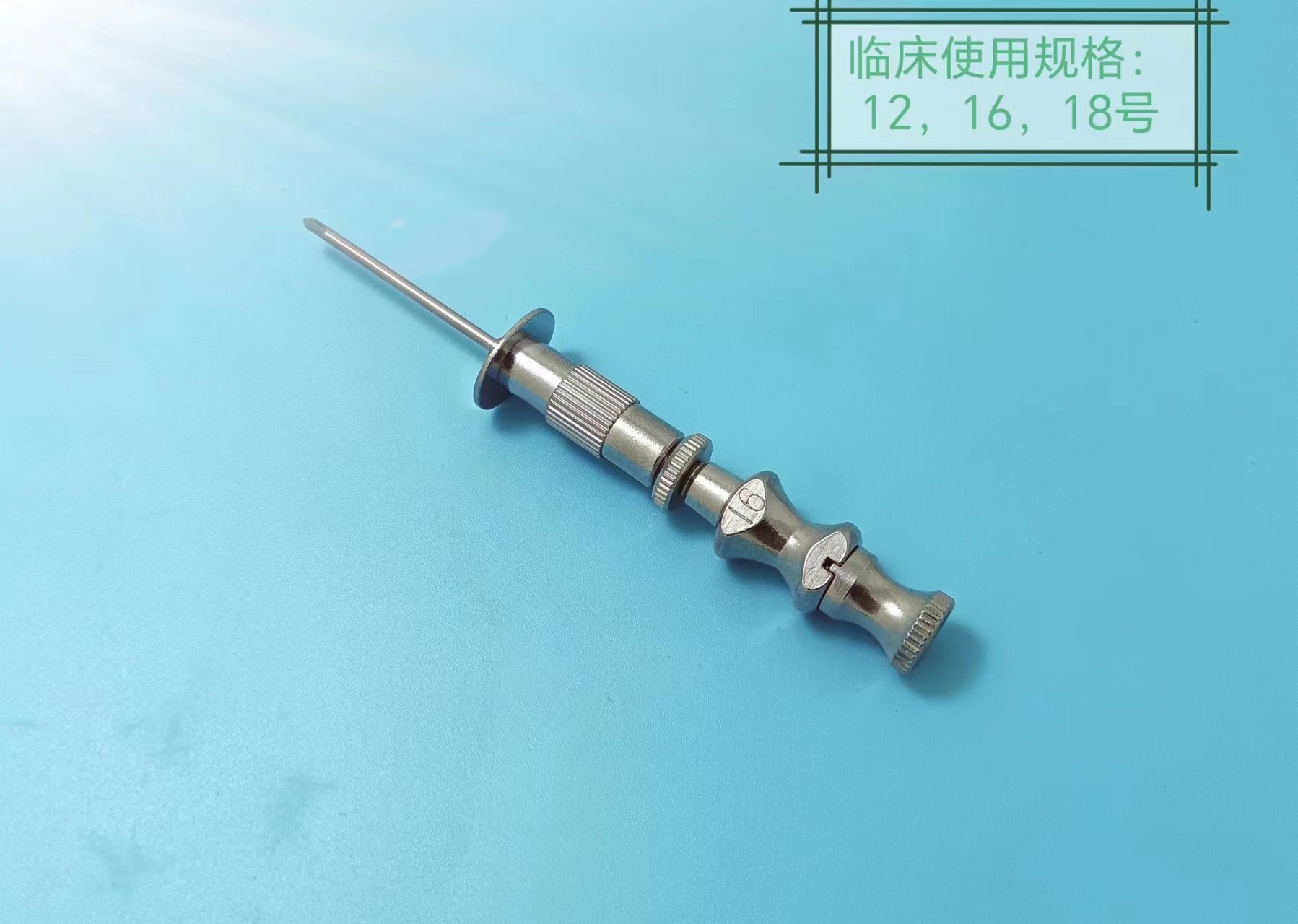骨穿刺針,由內(nèi)針、外針、調(diào)節(jié)深度螺母組成,針尖鋒利,材料為優(yōu)質(zhì)不銹鋼,乃磨乃腐蝕。常規(guī)產(chǎn)品型號(hào)1.2、1.6、1.8,長(zhǎng)度30、50mm,可根據(jù)要求定制。