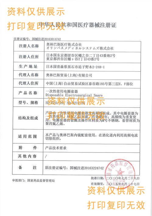 奧林巴斯一次性使用電圈套器SD-221U-25產(chǎn)品說明: