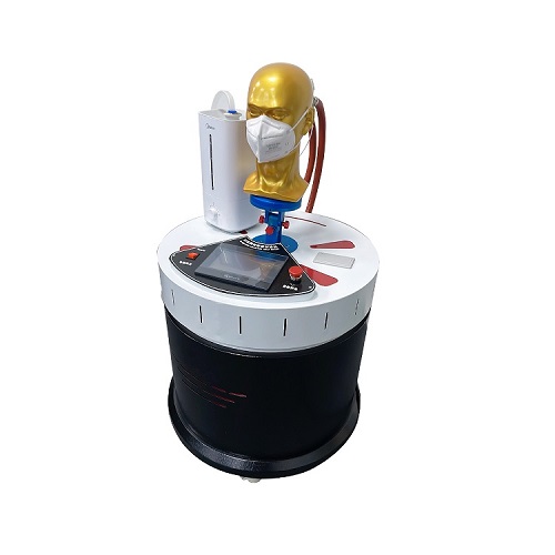 模擬穿戴預處理機,由呼吸模擬器、試驗頭模、飽和水蒸氣發(fā)生裝置、溫度控制裝置、?流量計等組成,可控制呼吸模擬器以25次/分鐘,每次2L的呼吸量運行??煽刂祁^模嘴巴附近飽和水蒸氣的溫度為(37+2)?°。開啟預處理裝置,使呼吸裝置及飽和水蒸氣發(fā)生裝置進入工作狀態(tài),直到達到穩(wěn)定。將呼氣器以氣密的方式佩戴在匹配的試驗頭模上,測試20分鐘左右。從呼吸器上取下顆粒物過濾材料,然后重新安裝上去,繼續(xù)重復測試10次。