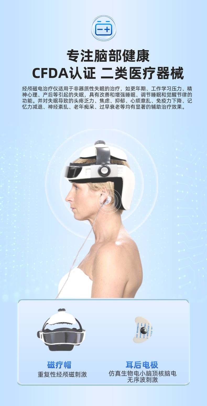 睡眠障礙 產后神經(jīng)衰弱抑郁 經(jīng)顱磁電治療儀 失眠治療儀產品說明: