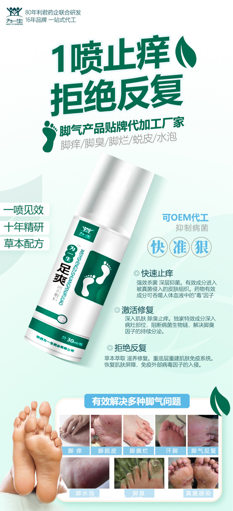 廠家定制足部噴劑噴霧抑菌液ODM貼牌代加工產(chǎn)品說明: