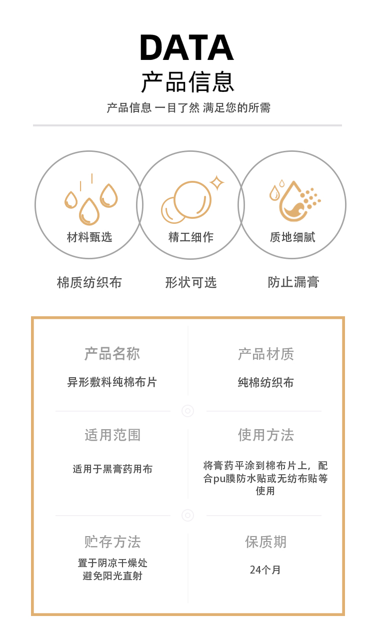 膏藥布專用異形敷料棉片加工定制生產(chǎn)廠家產(chǎn)品說明: