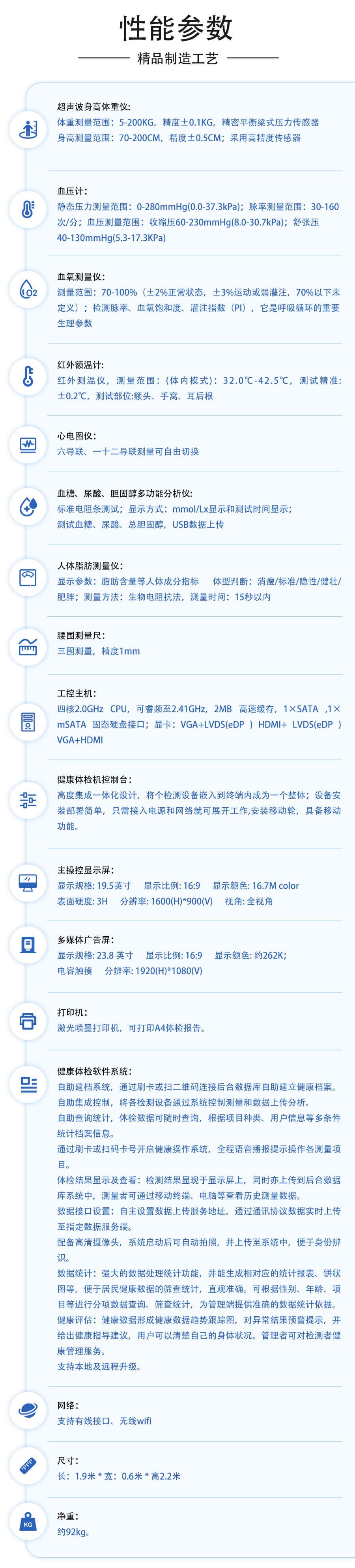 醫(yī)療健康一體機(jī)/健康檢測(cè)一體機(jī)/多參數(shù)健康體檢機(jī)-上正華瑞產(chǎn)品說明: