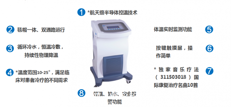 工作原理:采用航天級半導(dǎo)體制冷技術(shù)、自動控制技術(shù)等為一體的新型治療儀器,可實現(xiàn)精確的智能化低溫冷敷,以降溫毯、降溫帽與患者身體接觸、利用溫差控制體溫,達(dá)到降低體溫的目的;