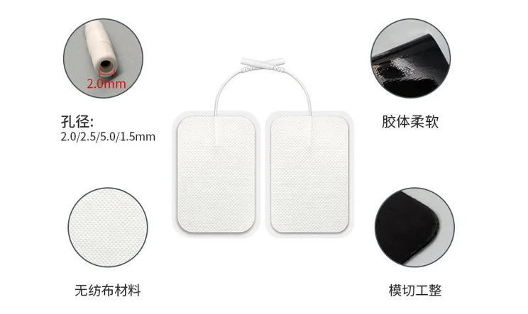 使用時(shí),貼附在理療部位。配合中低頻、干擾電等電療設(shè)備,將電療設(shè)備輸出的電刺激信號傳導(dǎo)到人體皮膚表面。