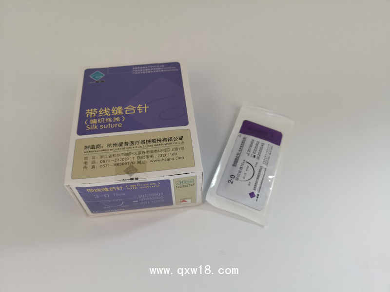產(chǎn)品由縫合針和非吸收性外科縫線組成,縫合線是用蠶絲線編織而成表面光滑,條干均勻,無污漬
