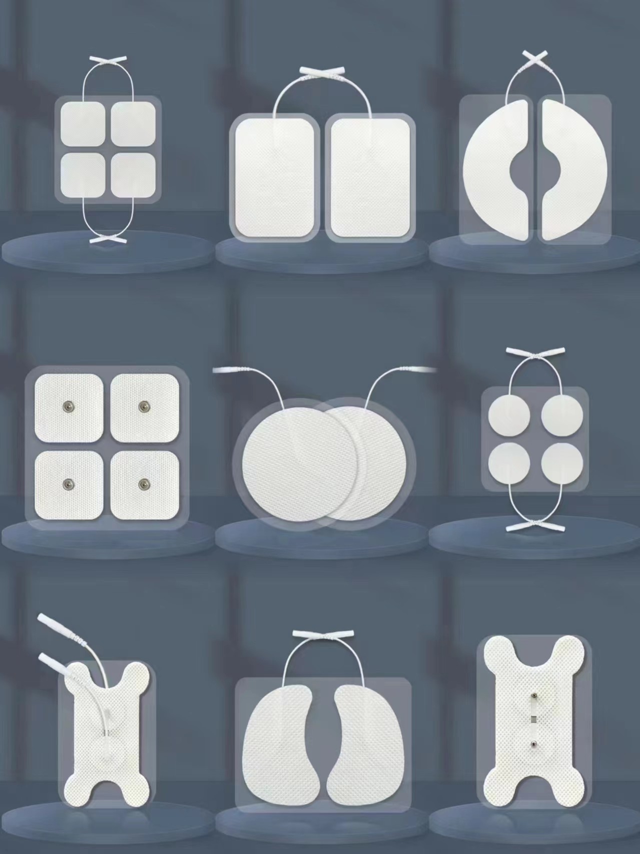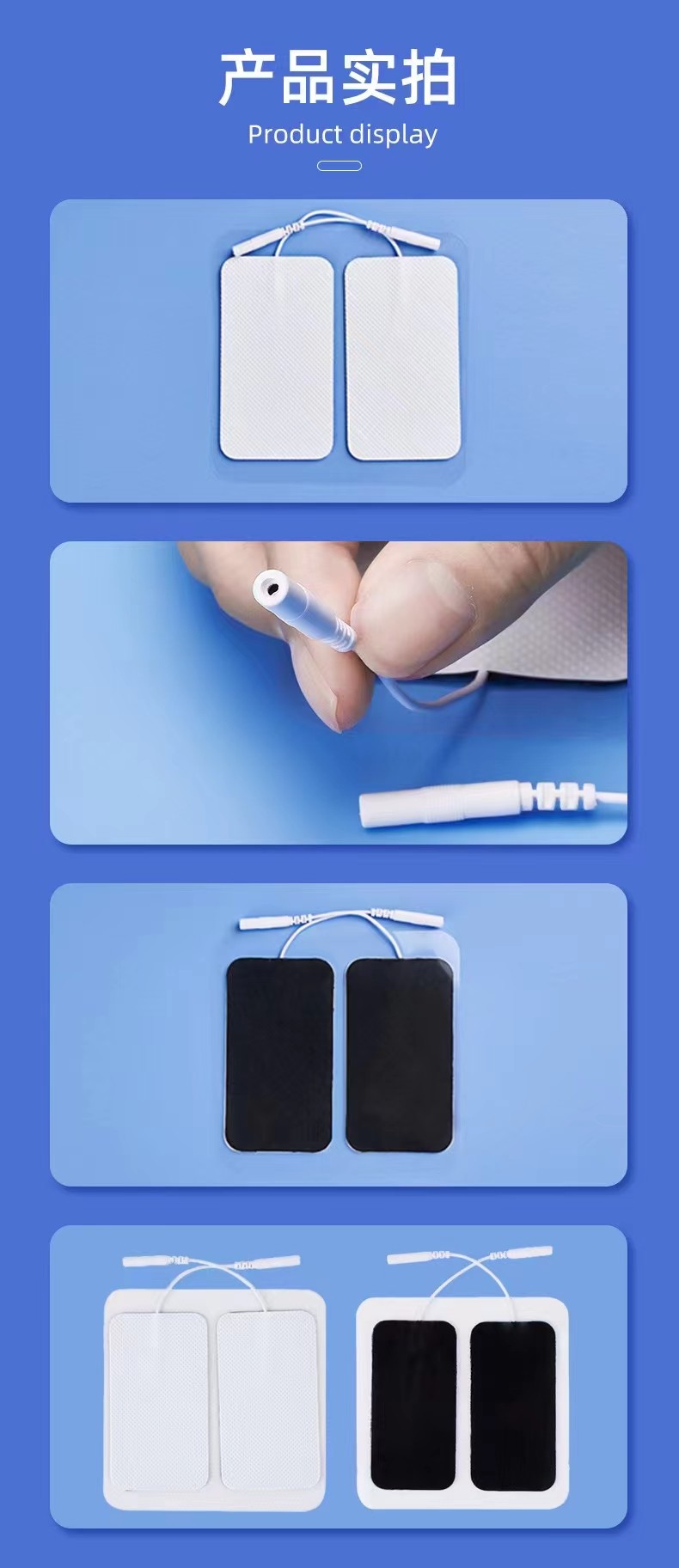 使用時(shí),貼附在理療部位。配合中低頻、干擾電等電療設(shè)備,將電療設(shè)備輸出的電刺激信號(hào)傳導(dǎo)到人體皮膚表面。