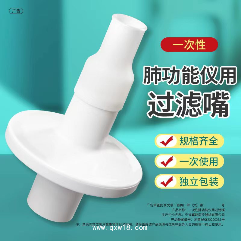 與肺功能儀連接,用于過濾患者吹氣時(shí)的唾液,避免交叉感染。非無菌提供。