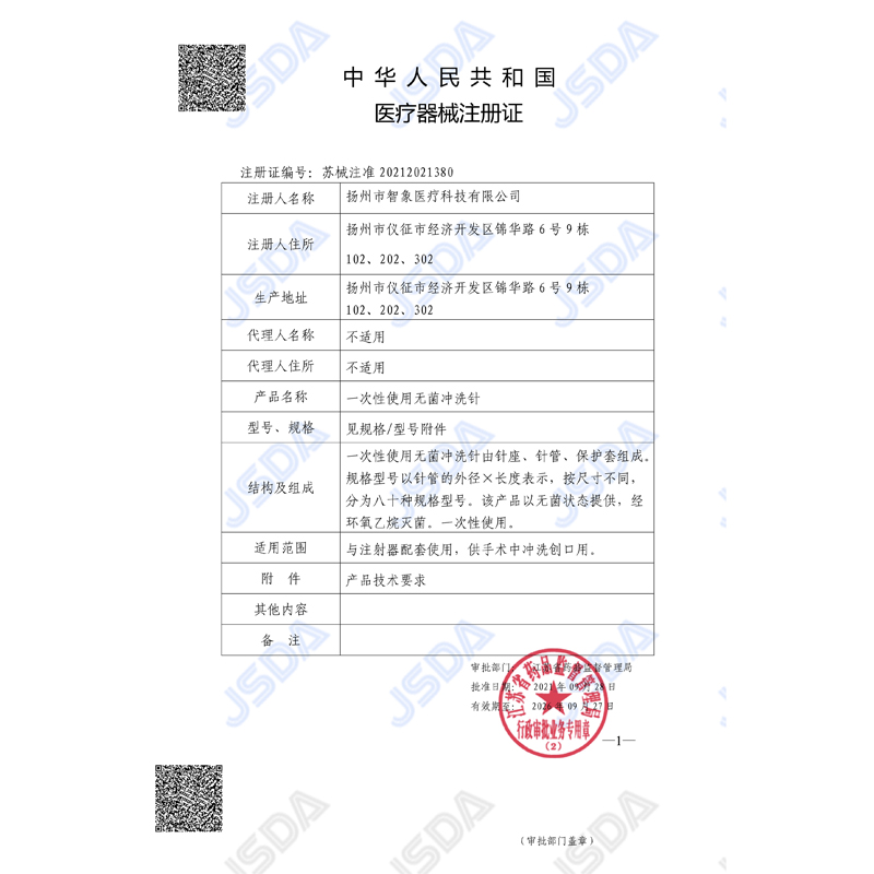 智象一次性使用無菌沖洗針 帶刻度產(chǎn)品說明: