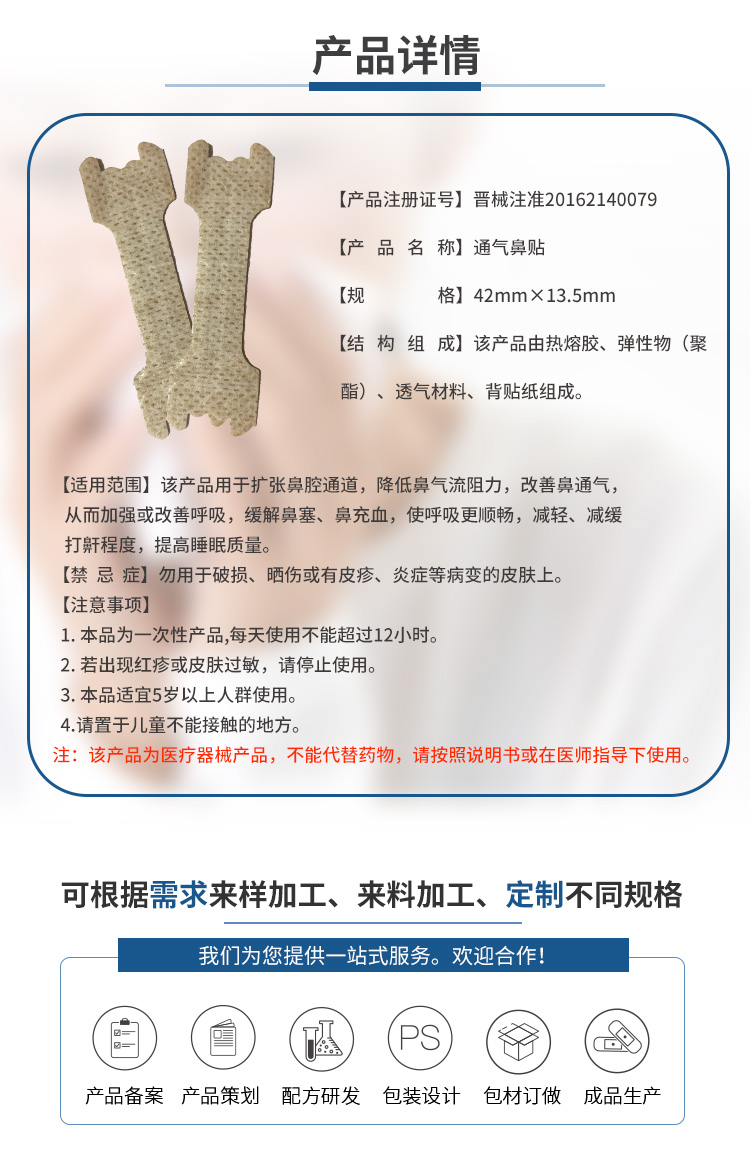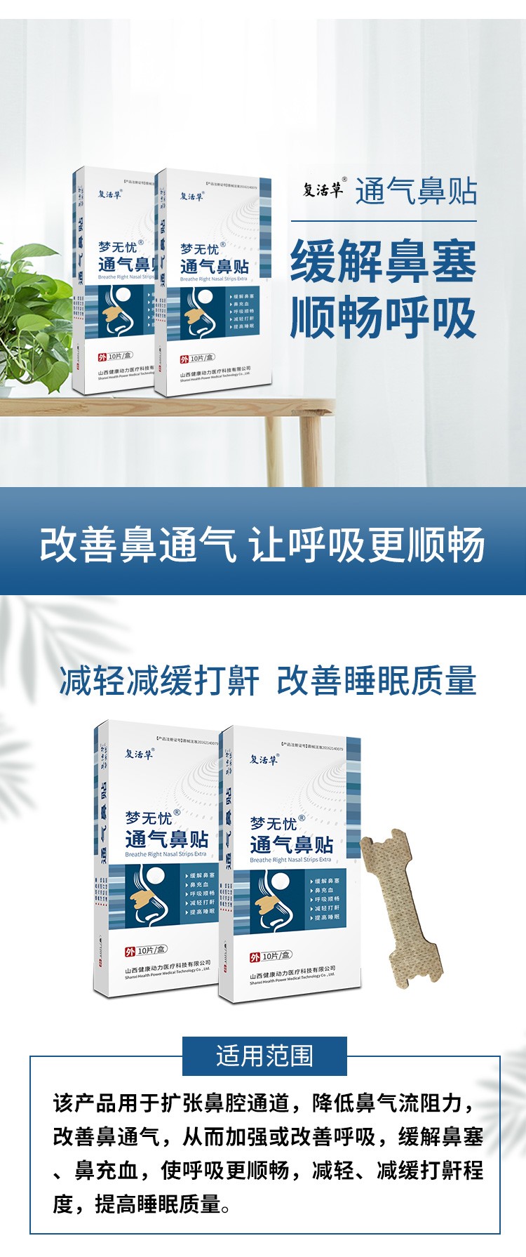 【適用范圍】該產(chǎn)品適用于擴(kuò)張鼻腔通道,降低鼻氣流阻力,改善鼻通氣,從而加強(qiáng)或改善呼吸,緩解鼻塞、鼻充血,使呼吸更順暢,減輕、減緩打鼾程度,提高睡眠質(zhì)量。????
