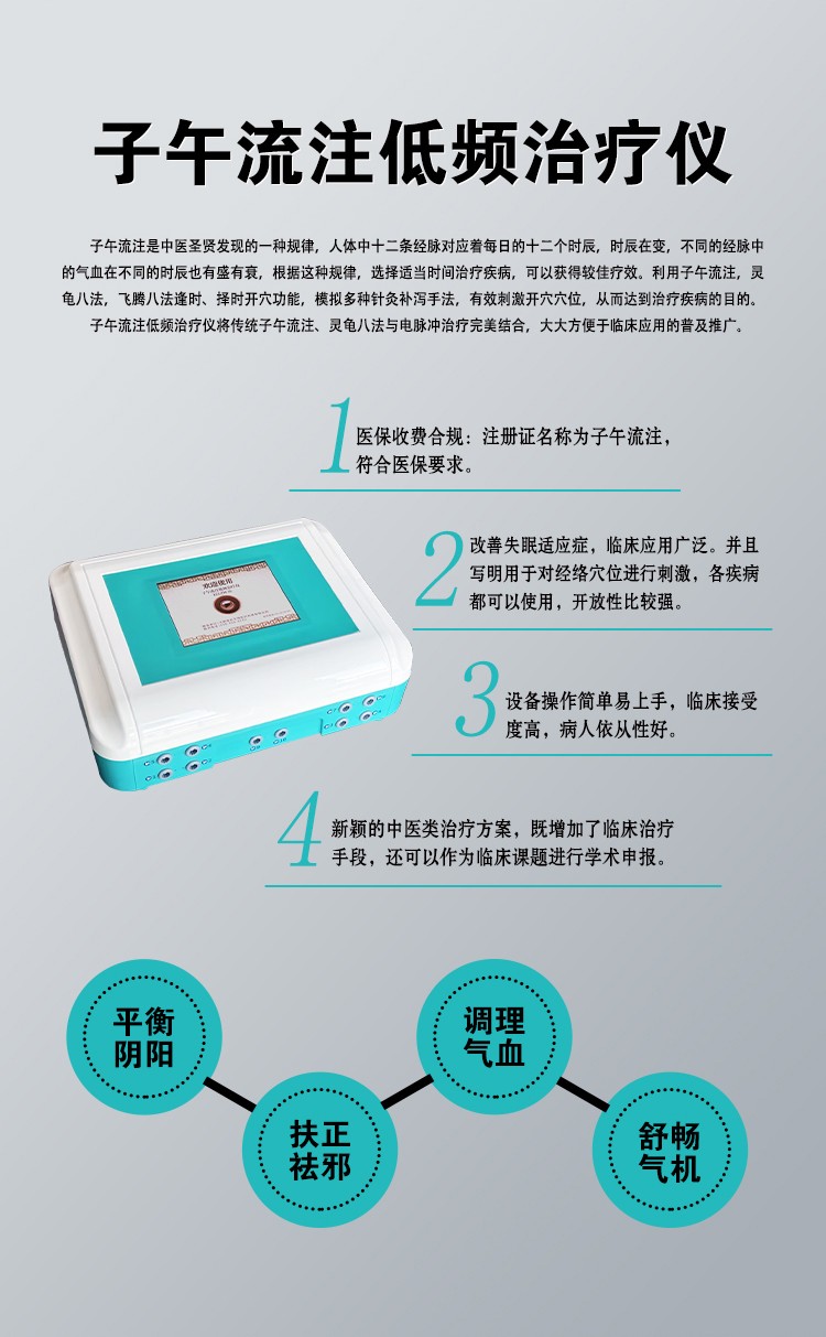 子午流注低頻治療儀將傳統(tǒng)子午流注、靈龜八法與電脈沖治療完美結(jié)合,大大方便于臨床應(yīng)用的普及推廣。