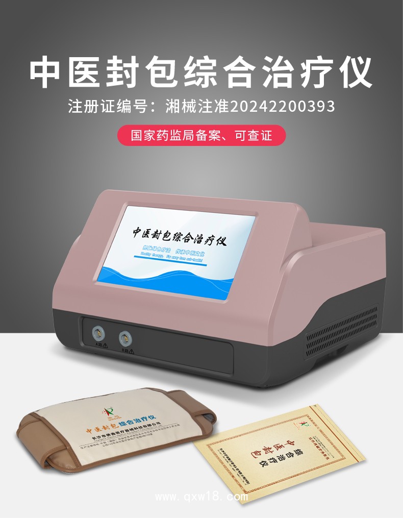 中醫(yī)封包綜合治療儀是運(yùn)用遠(yuǎn)紅外線、磁場(chǎng)發(fā)生裝置,并通過(guò)連接交流220V網(wǎng)電源提供驅(qū)動(dòng)電壓,磁場(chǎng)發(fā)生裝置、遠(yuǎn)紅外線發(fā)生裝置分別產(chǎn)生800Gs的磁場(chǎng)強(qiáng)度和波長(zhǎng)為8μm~15μm的遠(yuǎn)紅外線波,以紅外線磁療熱敷包的熱輻射溫?zé)嵝?yīng)、磁療共同作用于人體病灶部位,直接作用于人體經(jīng)絡(luò)和穴位,刺激人體神經(jīng)和肌肉組織,改善細(xì)胞膜通透性,擴(kuò)張血管,加速血流速度,從而增強(qiáng)人體局部的血液循環(huán),有效改善組織的供血狀況,起到消腫、鎮(zhèn)痛最終達(dá)到輔助治療的目的。