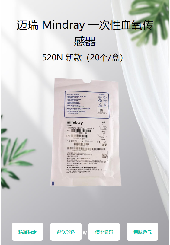 邁瑞 Mindray 一次性血氧傳感器 520N 新款(20個/盒)產(chǎn)品說明: