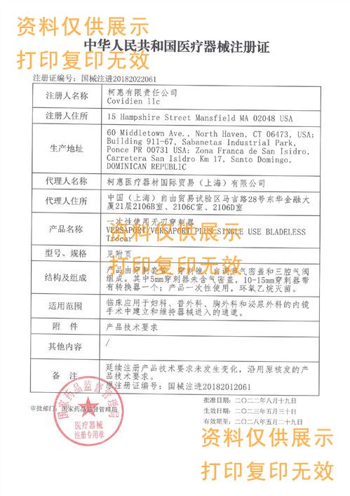 ? ? ?臨床應(yīng)用于婦科、普外科、胸外科和泌尿外科的內(nèi)鏡手術(shù)中建立和維持器械進(jìn)入的通道。