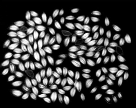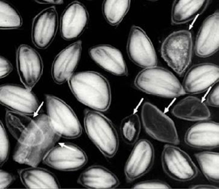 種子發(fā)芽需要溫濕度等環(huán)境條件的支持,但是這些都屬于外部環(huán)境,如果其本身不具備發(fā)芽能力,那么即使外部環(huán)境再好,種子也依然不會發(fā)芽。應用KUBTEC種子X光設備無損拍攝種子內(nèi)部圖像,以成像的方式檢查種子內(nèi)部胚芽是否健全,是否存在空洞,蟲害霉變等,進而為種子的初步篩選提供支持。另外線的圖像顯示方式,也為觀察種子內(nèi)部品質提供了方便,是種子內(nèi)部檢測變得更加直觀、方便、快速和高效,大大提高了種子檢測的效率和水平。如云南國家植物種子庫的建立,應用了X光設備進行種質判定后優(yōu)選良種入庫。