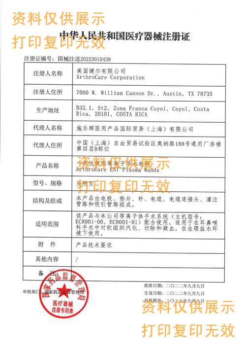 ? ? ? ? 該產品與本公司等離子體手術系統(tǒng)(主機型號:EC8001-00、EC8001-01)配合使用,適用于在耳鼻喉科手術中對軟組織汽化、切除和凝血,在生理鹽水環(huán)境下使用。