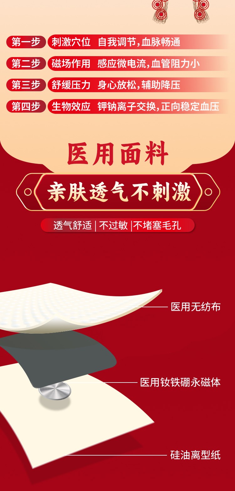 降壓貼 中老年高血壓保健貼二類(lèi)械字號(hào)掛網(wǎng)中標(biāo)產(chǎn)品說(shuō)明: