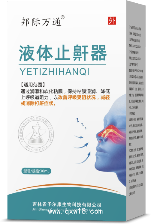 適用范圍:通過潤滑和軟化粘膜,保持粘膜濕潤、降低上呼吸道阻力,以改善呼吸受阻狀況,減輕或消除打鼾癥狀。
