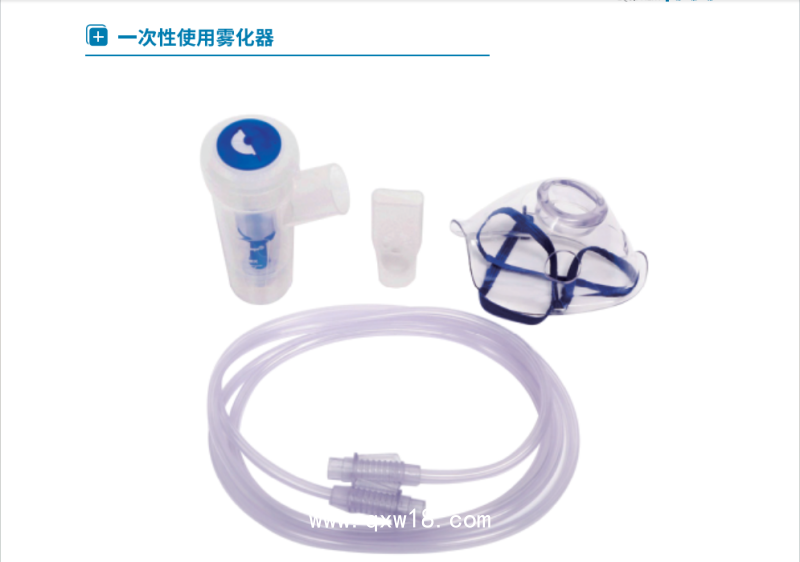 在呼吸裝置系統(tǒng)中,一端接入氧氣,用氧氣的壓力將放置于霧化器中的藥劑霧化,產(chǎn)生的霧化氣體通過霧化器的另一端吸入病人口中。