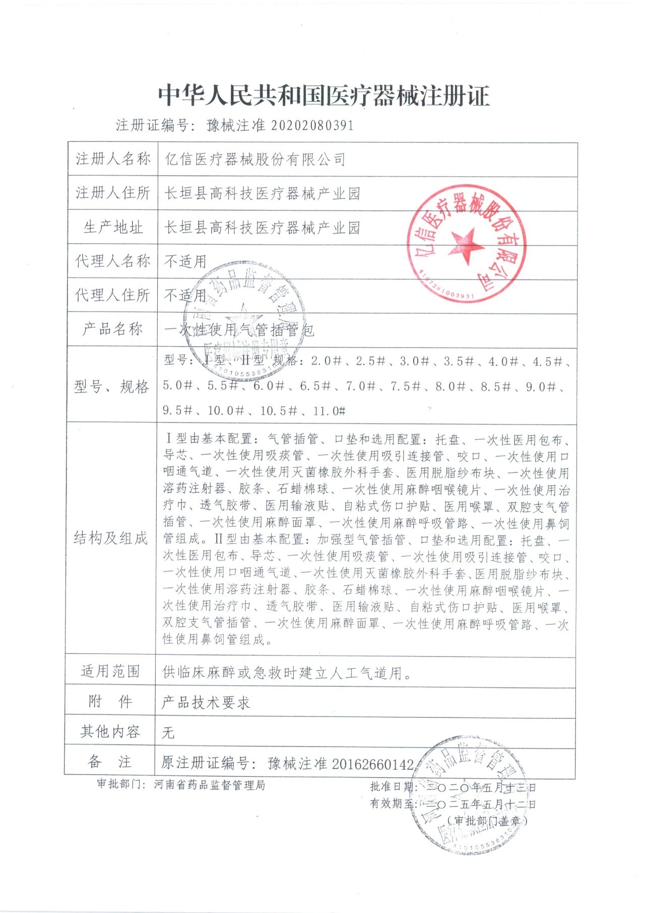 注冊證編號: 豫械注準20202080391